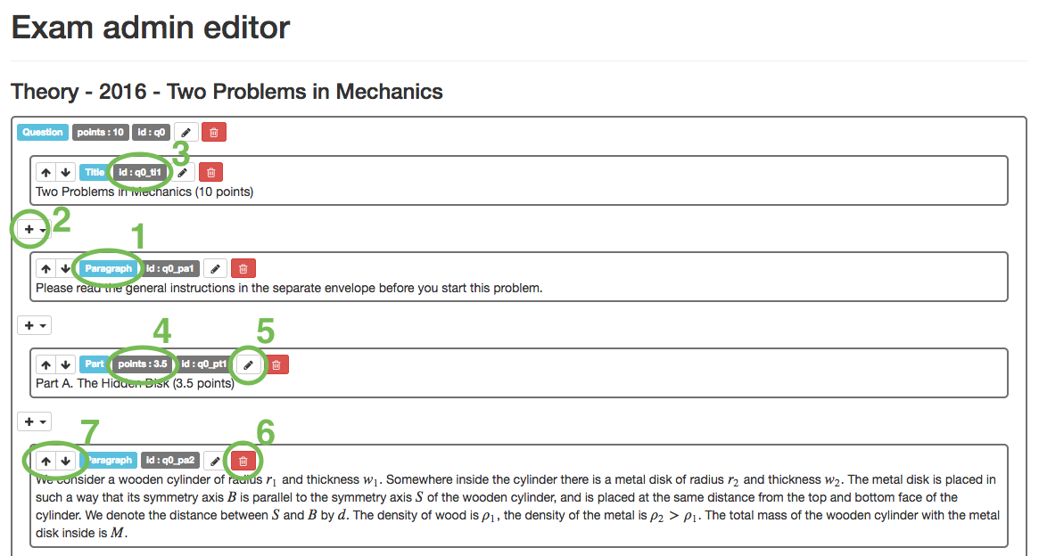 The admin editor is launched from exam management by clicking on the edit button. Only versions having status Proposal are editable.